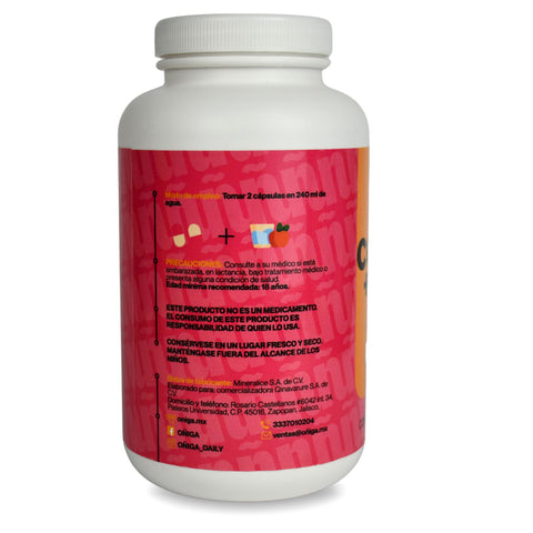 Modo de empleo: Tomar 2 cápsulas en 240 ml de agua.