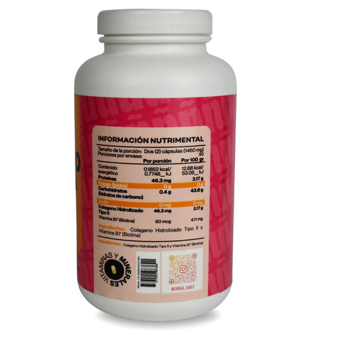 Ingredientes Colágeno Hidrolizado Tipo II y Vitamina B7 (Biotina)